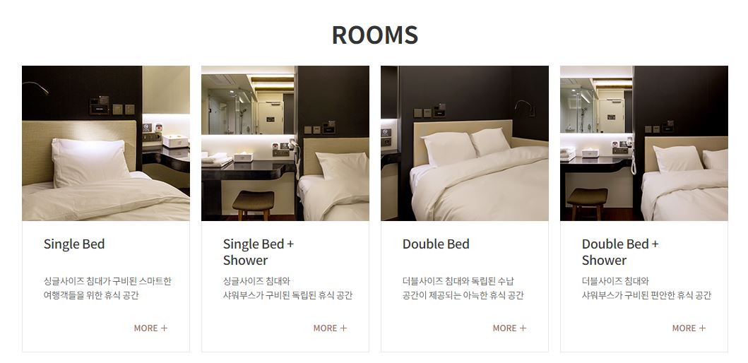 이름은 캡슐이지만 상상하는 캡슐은 아닌 방처럼 생긴 구조이다. 시몬스 매트리스를 쓴 고급 침대가 있고, 별도 샤워공간을 갖춘 객실도 있다. 시간 단위 과금 방식이라 3시간 이상부터 필요한 만큼만 합리적으로 이용할 수 있다.