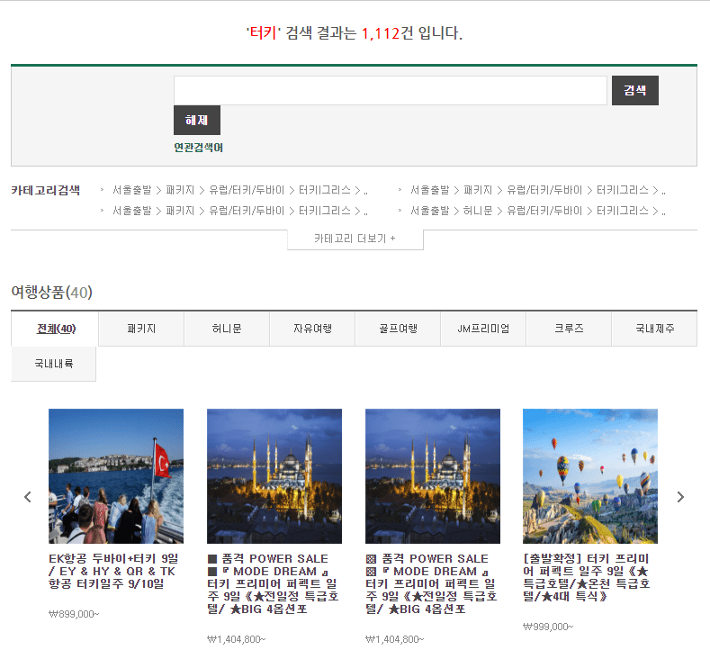 터키를 검색하면 많은 모두투어터키패키지여행이 나온다.