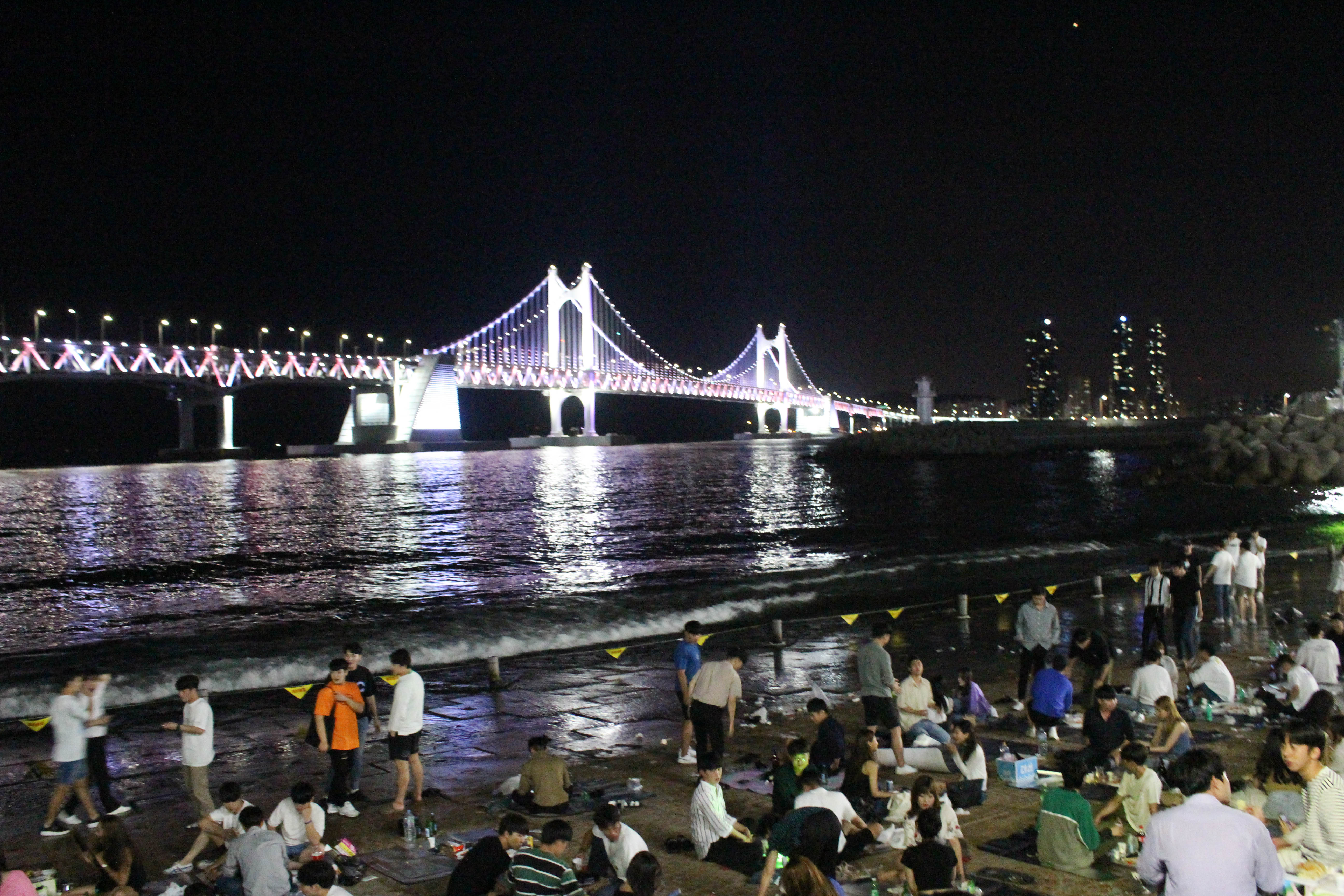 이 공원은 10만 가지 이상의 색상으로 경관 조명을 연출하는 광안대교를 배경으로 삼아 걸어가는 구간입니다. 친구나 연인, 가족과 함께 여흥을 즐기려는 사람들로 밤마다 북적거리는 곳이기도 하구요, 여름으로 접어든 시기가 아니더라는도, 늦가을이나 한겨울에도 분위기를 자아냅니다.