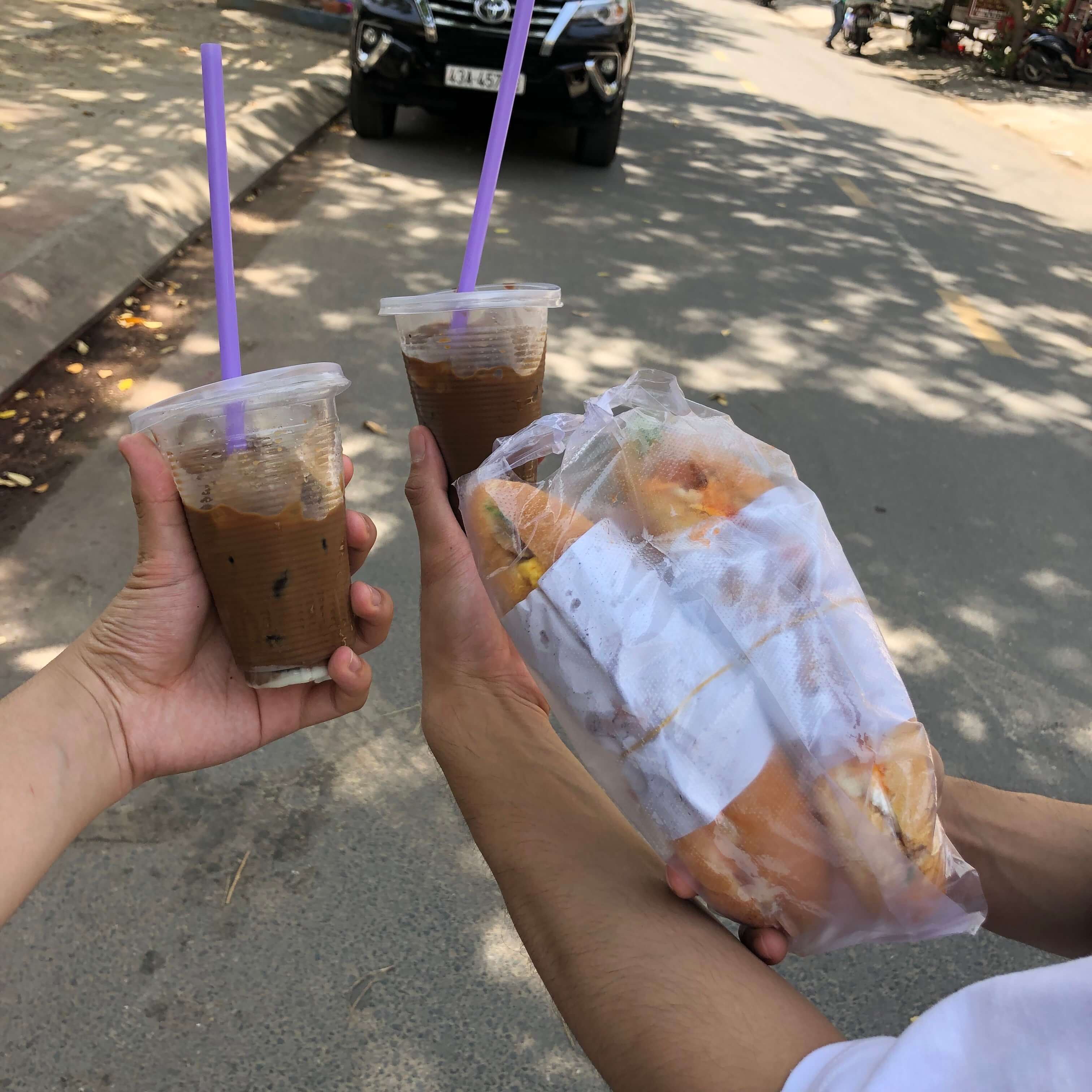 어제 천 원짜리 커피를 마신 그 노점에서 반미도 팔고 있길래 연유 커피와 반미를 맛있게 먹였다.