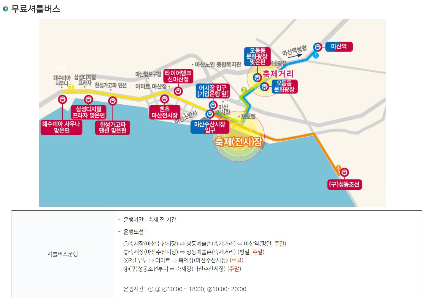 행사장으로 가는 교통안내와 무료셔틀버스도 있네요~ 꼼꼼하게 체크체크!