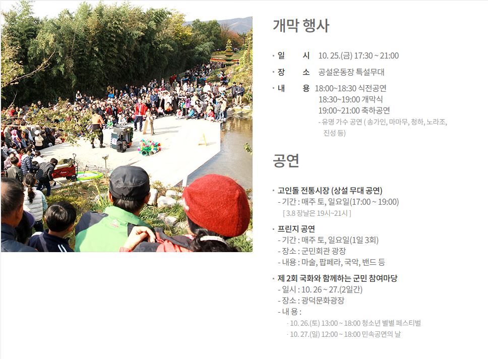 축제 내 행사에 대해서 조금 더 알려드리자면