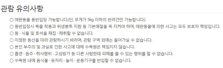 청산수목원 관람 유의사항입니다. 잘 숙지해두고 가면 좋겠죠~?