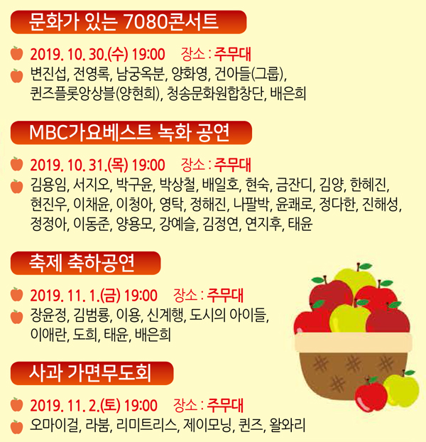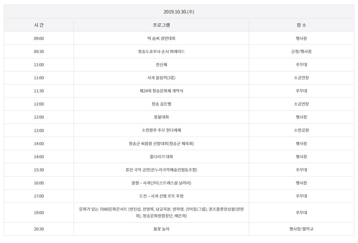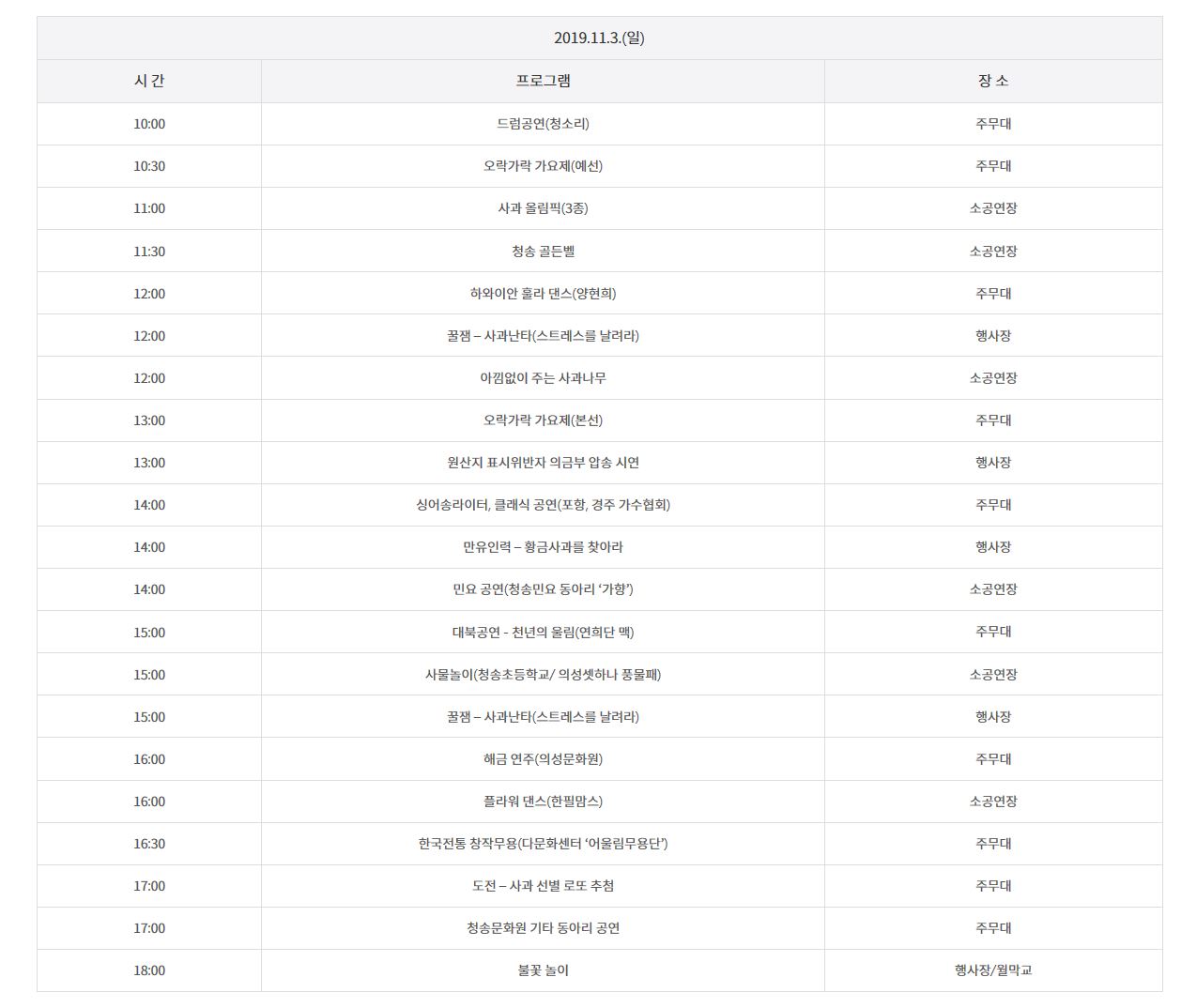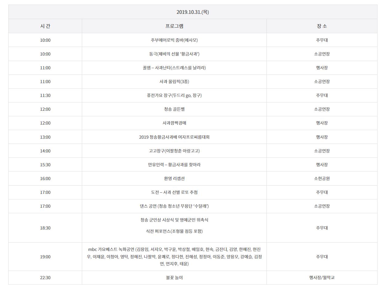 2019 청송사과축제 일정표입니다.