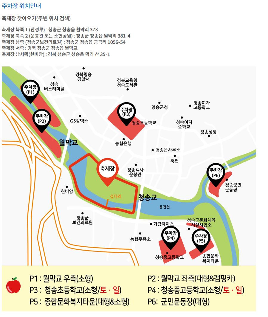 청송사과축제 주차장 위치안내입니다.