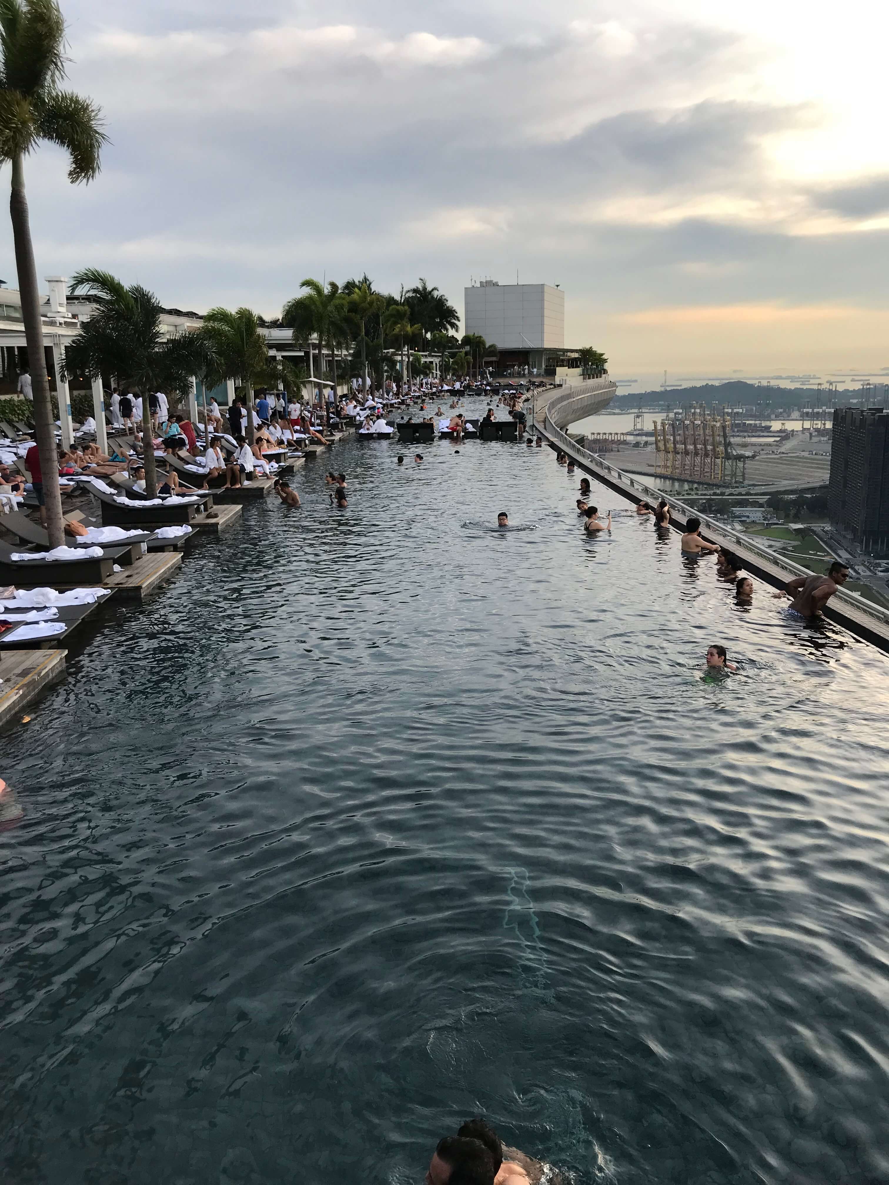 바 바로 옆에는 마리나 베이 샌즈 호텔 이용객들이 사용하는 수영장이 있어서 눈이 마주친 사람과 손짓으로 인사까지 했다.