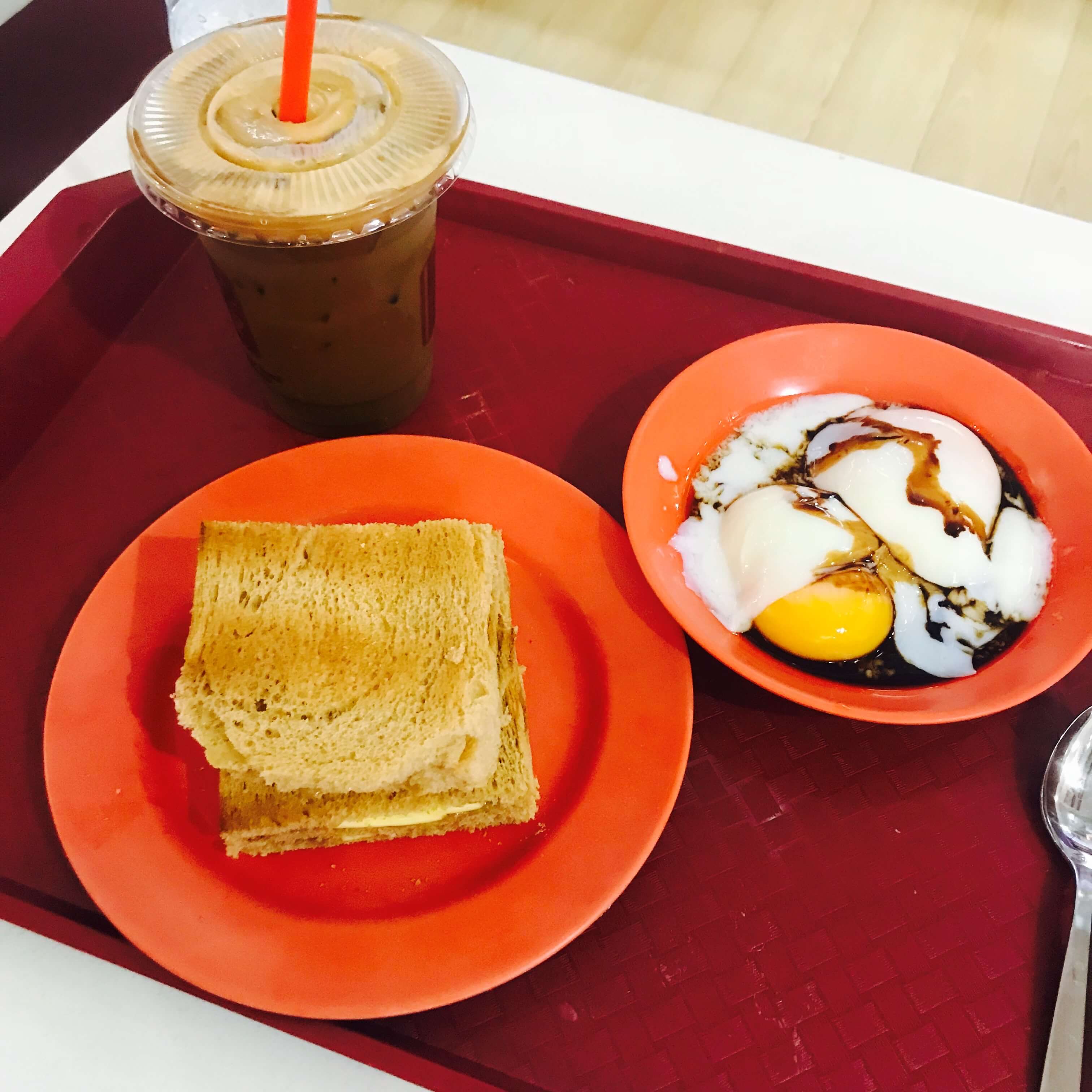 여기서는 카야 토스트를 주문하면, 수란에 간장을 뿌려서 주는데, 수란과 간장을 섞은 다음 토스트를 찍어서 먹는다고 한다.