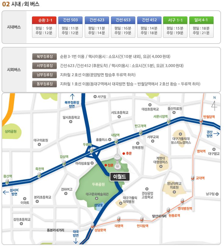 대구 이월드 교통안내입니다.