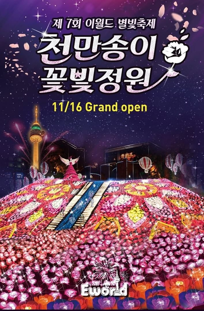 올해로 7회째 이어지는 이월드 별빛축제는 2019년을 맞이하여 <천만송이 꽃빛정원>이라는 슬로건 아래 겨울 이월드에서만 볼 수 있는 꽃과 별빛의 화려하고 로맨틱한 모습을 선보일 예정입니다.